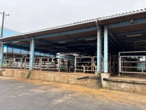 生産者から搬入された牛を、受け入れ検査場で受け入れます。